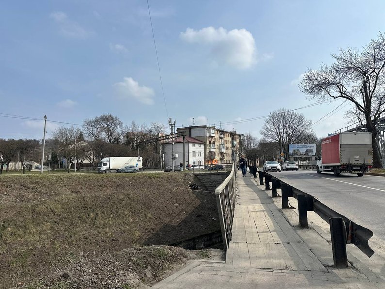 Міст на вул. Ковча. Суспільне Львів/Катерина Олійник"Сюдою проходить величезний трафік автомобілів: на щоденній основі близько 27 тисяч автомобілів і 60 одиниць громадського транспорту проходить через цей міст. Для того, щоб ми могли відреставрувати існуючий міст, зараз будується новий — після того, як збудуємо новий, можна закрити на реконструкцію існуючий міст з подальшим закільцюванням руху з використанням цих двох мостів", — зазначив директор департаменту міської мобільності Олег Забарило.