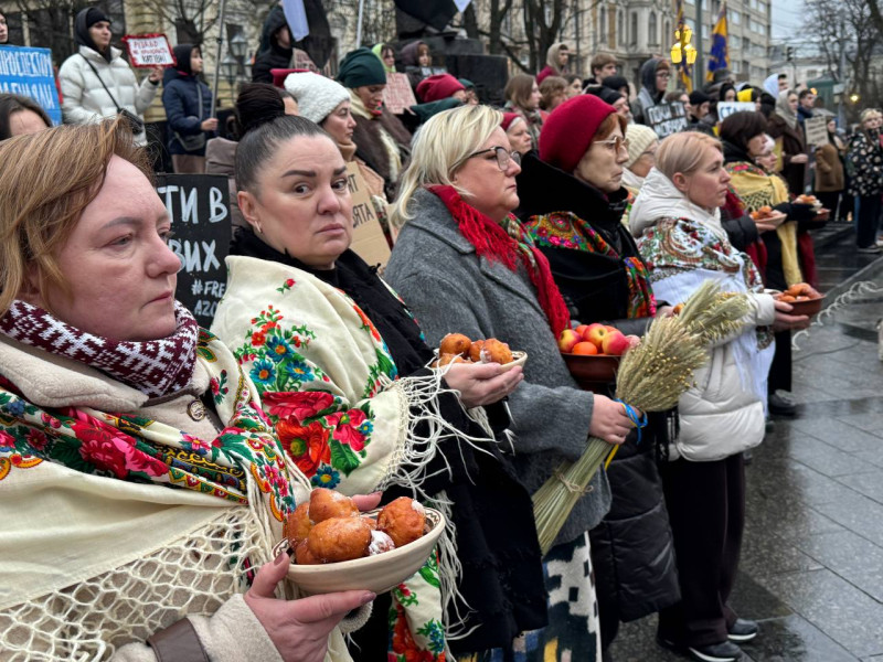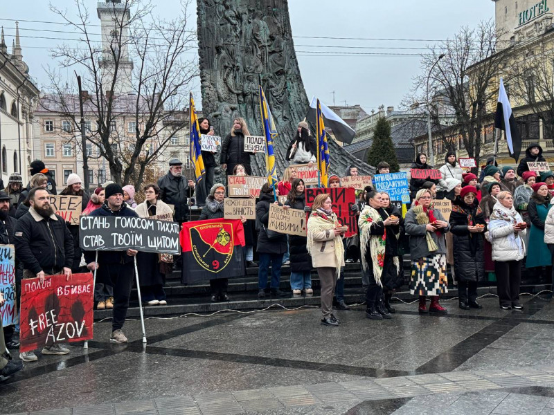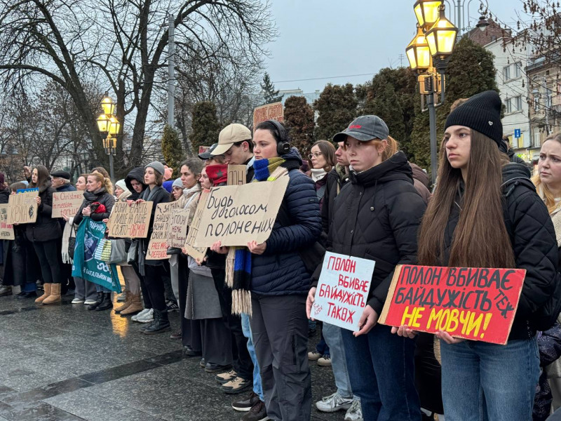 Люди зібралися біля пам'ятника Шевченку о 16:00. За словами організаторки заходу Ірини Новосядло, це акція-нагадування про військовополонених Маріупольського гарнізону, а також усіх полонених і безвісти зниклих українців.