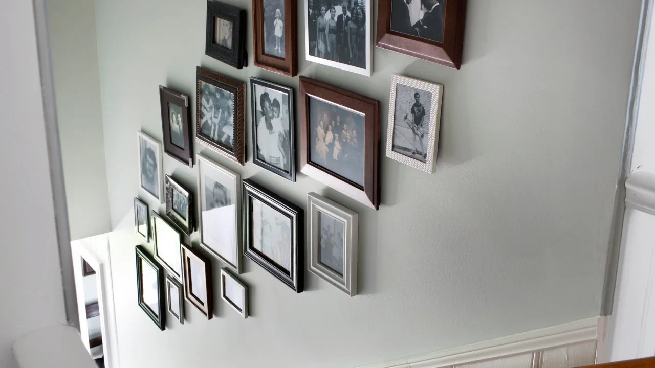 - розміщення рамок під кутом вздовж сходів має повторювати лінію підйому для гармонійності.