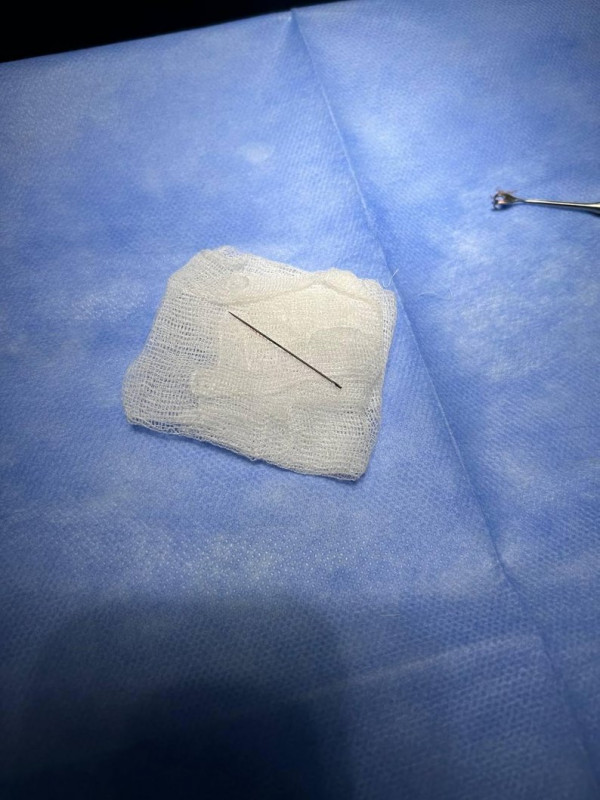 Голка, яку витягнули під час операції. Пресслужба Львівської ОВА