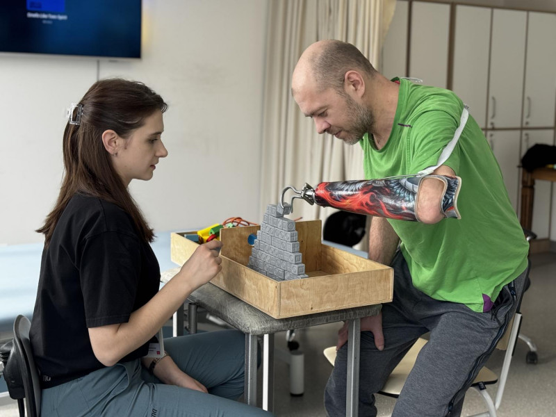 А в березні, за три місяці після поранення, Сергій отримав свій перший механічний протез. А невдовзі ще один – високотехнологічний. Зараз пацієнт активно вчиться користуватися своєю біонічною рукою.