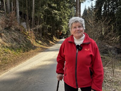 85-річна Людмила Аліскерова. Суспільне Львів/Сович Марія"Поїхала в Славсько, все роздивилась. Вилізла на саму гору, подивилась — краса. Куди ще — Плай. Полізла на саму гору. Сиділа, мабуть, годину. Така краса, прямо душа радується. Я зараз щаслива людина. Я щаслива, що я сюди попала, що я тут", — поділилася Людмила Аліскерова.