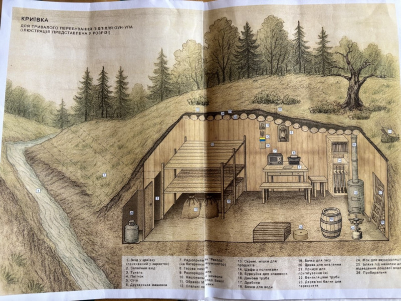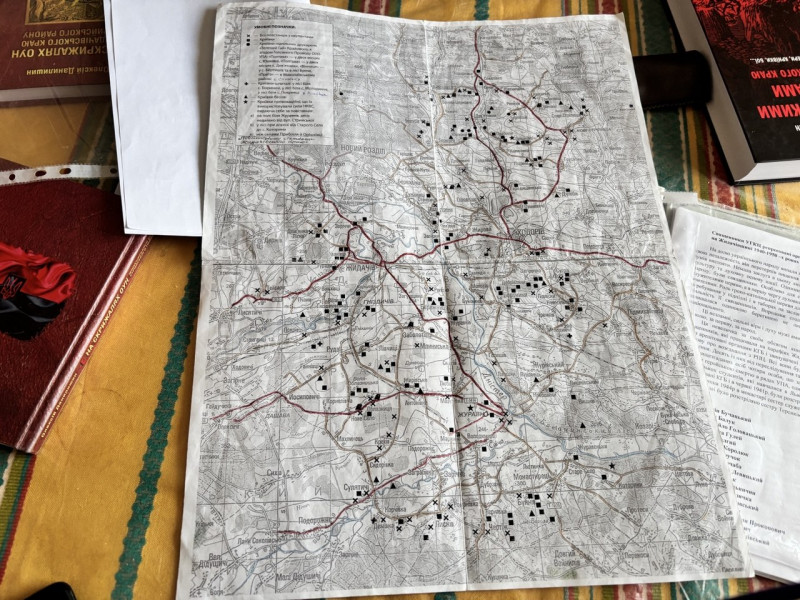 "Так описано 100 криївок. Всі криївки були зруйновані, але я ходив по лісах і селах, там, де загинули люди. Міряв, скільки, і в книжці малював. Усі криївки нанесені на карту — це військова мапа", — поділився дослідник історії національно-визвольної боротьби.