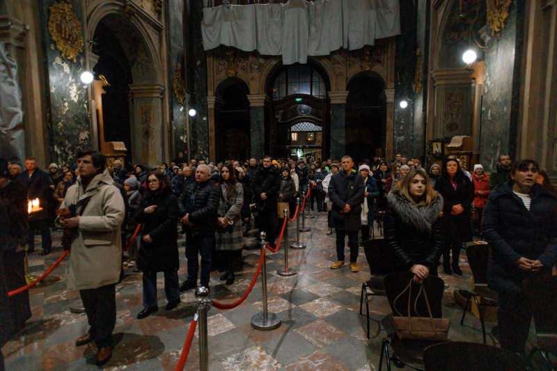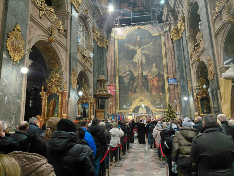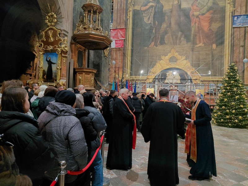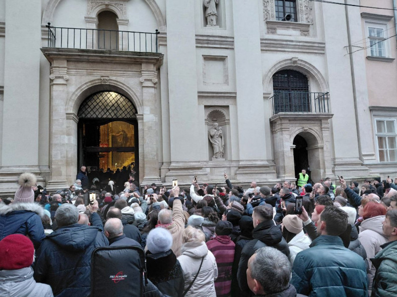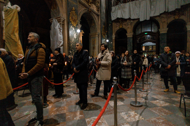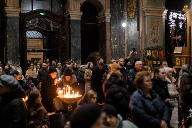 Чин парастасу розпочався о 19:00. Від обіду люди продовжують прибувати до храму.