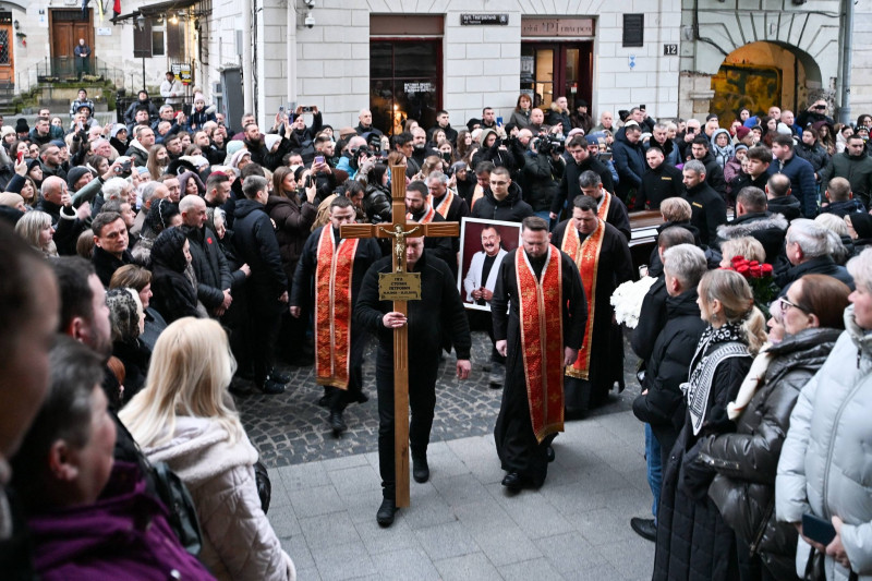 Як повідомила кореспондентка Суспільного, прощання розпочалось о 16:00. Люди почали сходитися задовго до цього. Попрощатися з виконавцем прийшли рідні, колеги та львів'яни.