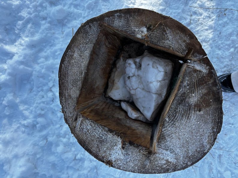 "Беремо солі, кладемо в солонець для кращого засвоєння оцих наших кормів. В колоді ми робимо надрізи, де сіль розмокає, стікає при дощах, при таненні снігу і тварини собі безпечно злизують", — ділиться Іван Лепесевич.