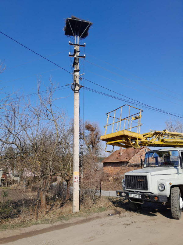 Енергетики вже 21 рік поспіль встановлюють спеціальні металеві платформи, які піднімають гнізда над лініями електропередач.