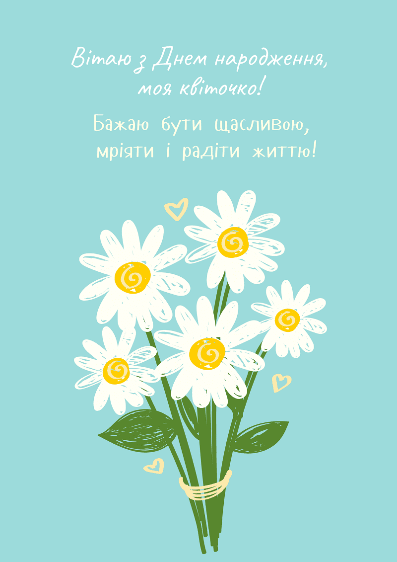 Бажаю, щоб твої мрії ставали реальністю, а серце переповнювалося щастям і любов’ю! Нехай твоє життя буде сповнене радості і гармонії! 🌷🎂