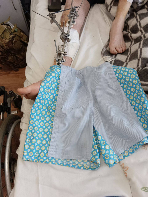 Замість білизни жінка вирішила шити шорти, в яких можна і по палаті ходити, й надвір. Тому робить їх довшими, ніж звичайні труси, а щоб розмір був більш-менш універсальним, на резинку ставить фіксатори. Комбінує тканини, додає кишені, які вирізає з чоловічих сорочок. Також перекроює звичайні футболки й штани, щоб було зручно одягати. Загалом зробила понад 2 тис. одиниць адаптивного одягу для поранених військових.
