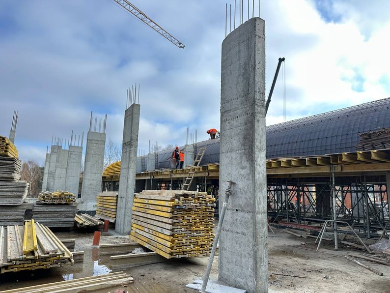 Наразі працівники підрядної організації завершили бетонування більшої частини будівлі, звели 70% стін, проклали основні мережі та змонтували аркове склепіння — це один із найскладніших елементів конструкції.