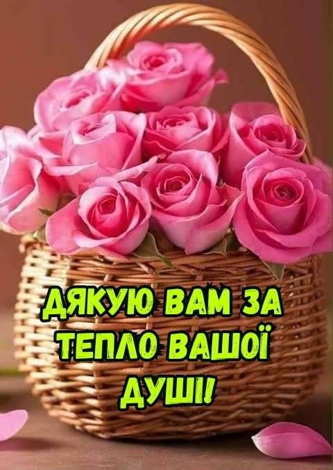 Дякую за такі чудові вітання та добрі побажання у мій день народження. Хай там, що б не траплялося у житті, я все одно вірю, що кожна людина має бути щасливою. А твої слова подарували мені ще більше натхнення, впевненості та бадьорості. Тому усе буде добре і у мене, і у тебе, і у кожного з нас. І разом зі своєю подякою хочу побажати тобі добра, кохання та везіння