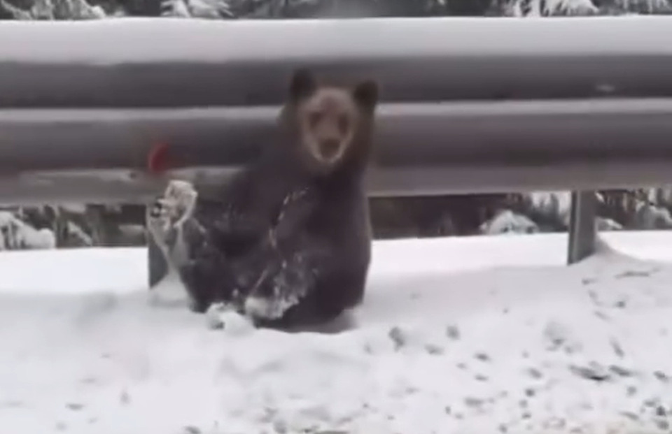 Автори відео, рухаючить на автомобілі, зафіксували двох бурих, які вибігли на проїжджу частину. Один з них розгулював посеред дороги, а інший сидів на узбіччі.