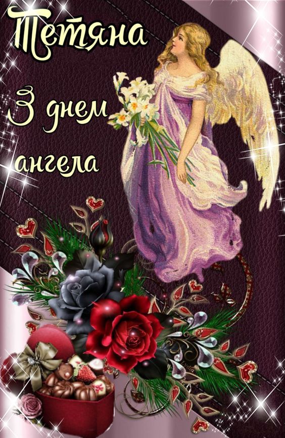 З Днем ангела Тетяни. Прийми щирі вітання, люба. Хочу побажати тобі завжди відчувати підтримку свого янгола, особливо в скрутні миті. Нехай усі твої мрії здійснюються, плани втілюються в життя, процвітання тобі та успіхів.