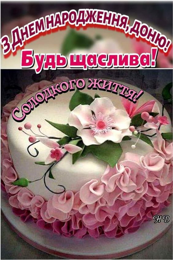 Донечко моя рідненька, дорога і кохана! Поздоровляю тебе з днем народження! Бажаю, щоб щастя і радість не вміщались у твоє добре сердечко, щоб усі солов’ї співали для тебе проникливі пісні, щоб душа твоя злітала в небо від радості існування, щоб ти кохала і була завжди ніжно коханою! Величезних успіхів у твоїй праці, веселого натхнення, гарних друзів і безмежного щастя на довгі-довгі роки безхмарного життя!