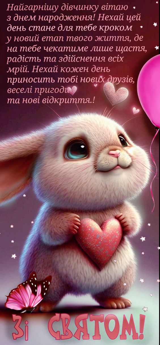 Моя мила донечка! Я вітаю тебе з днем народження та бажаю завжди залишатися чудовою людиною з неймовірною красою та добрим серцем, з відкритою душею та світлими мріями. Нехай для тебе цей світ відкриває великі можливості та нові перспективи, нехай з тобою завжди буде твоя удача та любов!