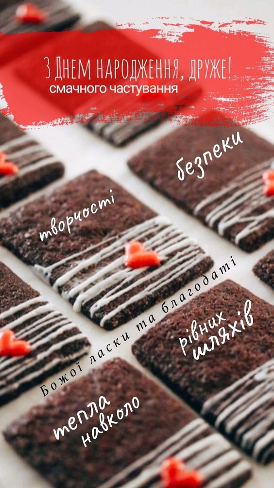 Вітаю тебе з днем народження, друже. Нехай тобі щастить завжди та всюди. Нехай життя має солодкий смак щастя. Нехай кожен твій день починається успішно, а закінчується вдало. Нехай тебе надихають на щось чудове та незвичайне вірна любов та міцна дружба.