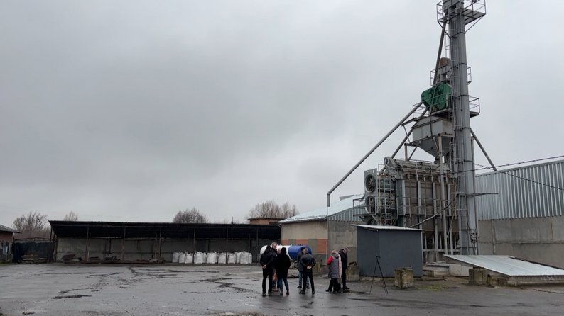 Мешканці села та представники місцевого самоврядування прийшли до підприємства. Їх зустріли власник зерносушарки та працівники.