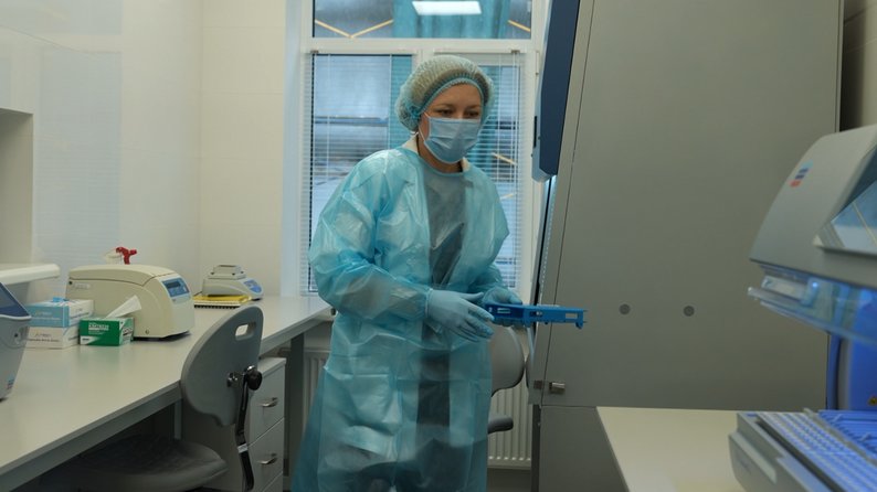 "Оскільки в нас зараз велике завантаження і є досить велика черга, спочатку цей матеріал в нас фактично зберігається в умовах морозильних камер. І по мірі того як відбувається дослідження, ми його беремо безпосередньо. Під час дослідження біологічний матеріал попадає на наступний етап тільки шляхом передачі через таке шлюзове вікно, ніхто з ним по коридору не пересувається", — розповідає Юлія Демчук.