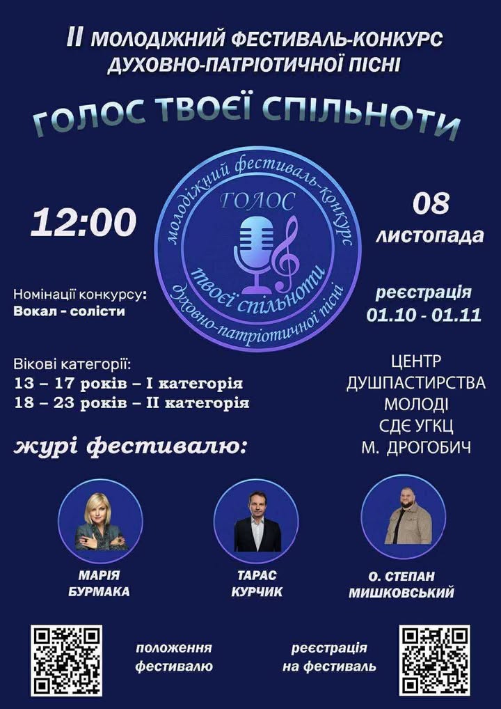 Любиш співати та мрієш проявити свій талант? Тоді саме для тебе — ІІ Молодіжний фестиваль-конкурс духовно-патріотичної пісні «Голос твоєї спільноти»!