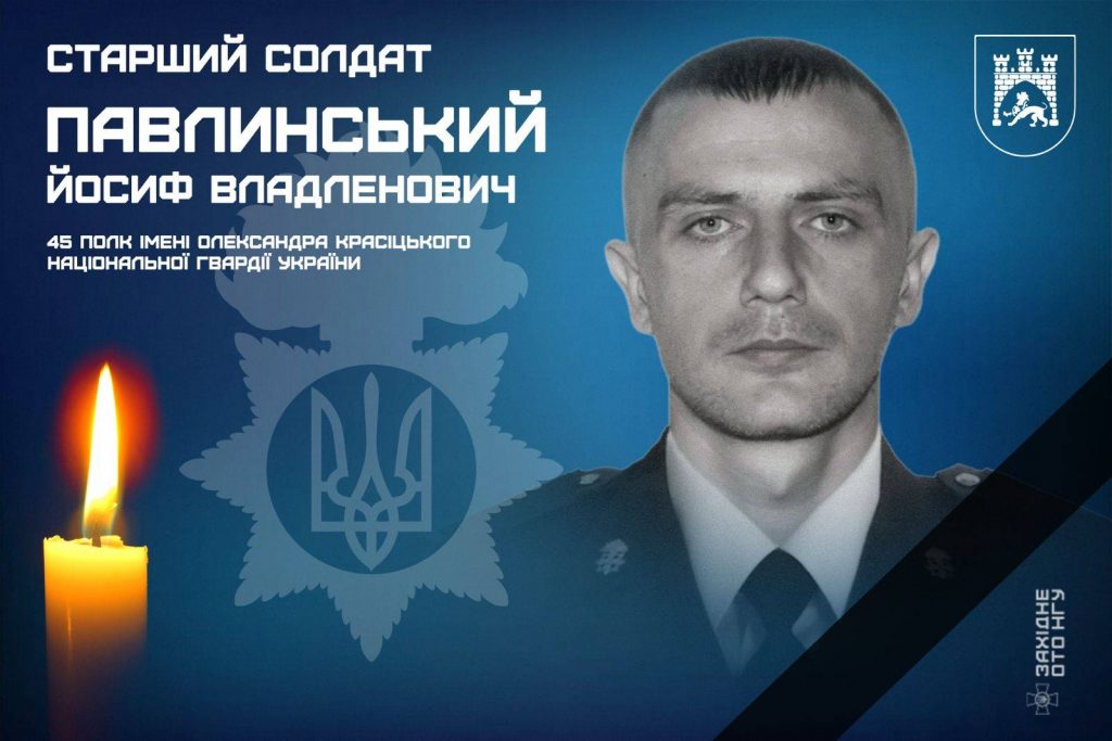 У лікарні помер 30-річний військовослужбовець Національної гвардії України Йосиф Павлинський, який отримав травми внаслідок теракту у центрі Львова 22 лютого.