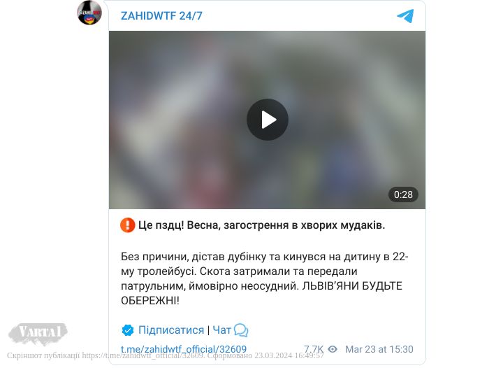 Чоловік без причини, дістав дубинку та кинувся на дитину.