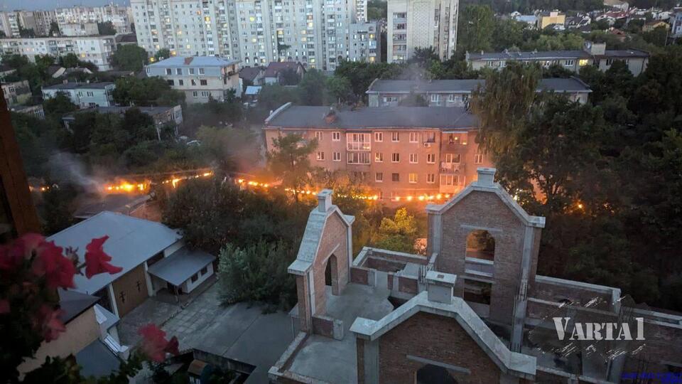 В районі Левандівки (Львів). За попередньою інформацією, згоріла підстанція чи трансформатор, в районі спостерігали перепади світла.