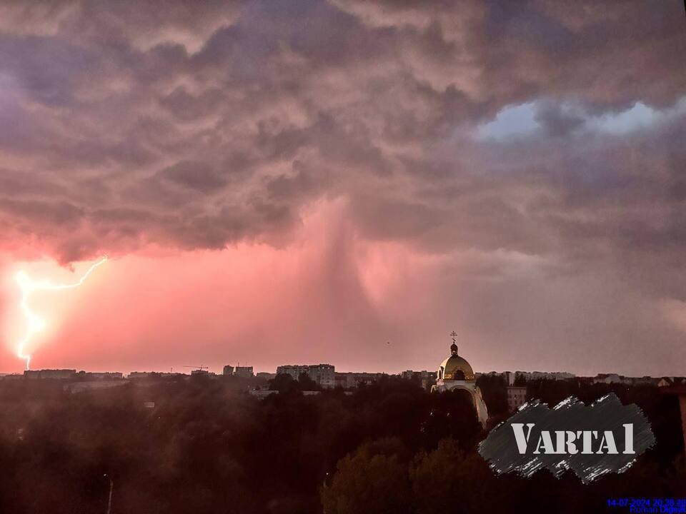 Сьогодні ввечері, 14 липня, на Львівщину насунулася гроза. Крім того, негода знову спричинила чимало біди. Користувачі в оперативному чаті «Варта-1» поділилися кадрами з різних точок міста та області.