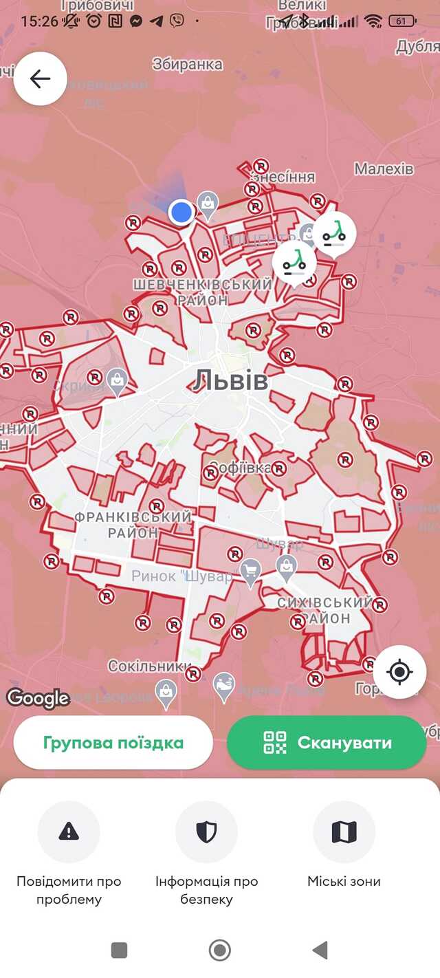 «Вчора зранку на все місто було лише 3 самокати, до обіду вже два, а до вечора сервіс повністю вимкнули. В підтримці оператора спочатку порадили »слідкувати на картою«, а пізніше заявили про »тимчасові незручності« і відмовились називати причину закриття сервісу. Після цього в додатку цей розділ став неактивним. В Києві та Франківську самокати станом на вечір 1 квітня продовжують працювати з їх великою кількістю на вулицях», – зазначили у ГО «Зручне місто».