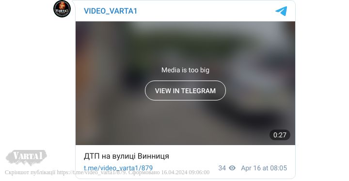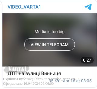 16 квітня о 8.45 на вулиці Винниця у Львові зіткнулись автомобілі «Рено Кенго», яким керував 83-річний мешканець Львова та «Хонда Акорд» під керуванням львів’янина віком 43 роки. Від удару автомобіль «Хонда» перекинувся.