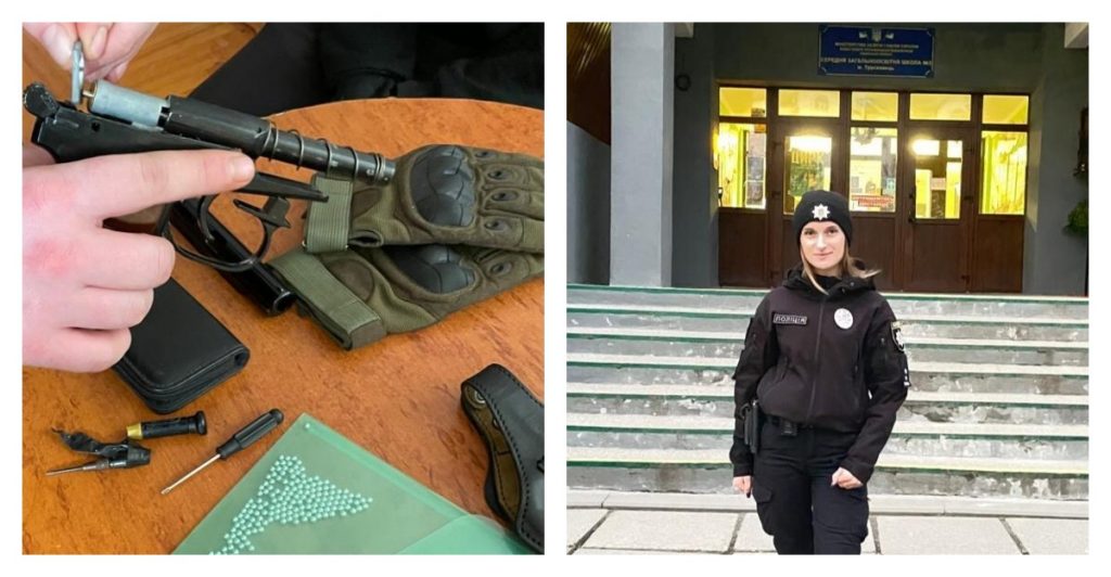 Зброю в учня виявила інспектор сектору Служби освітньої безпеки Дрогобицького районного відділу поліції лейтенант поліції Вікторія Богун. Підлітка опитали в присутності матері.
