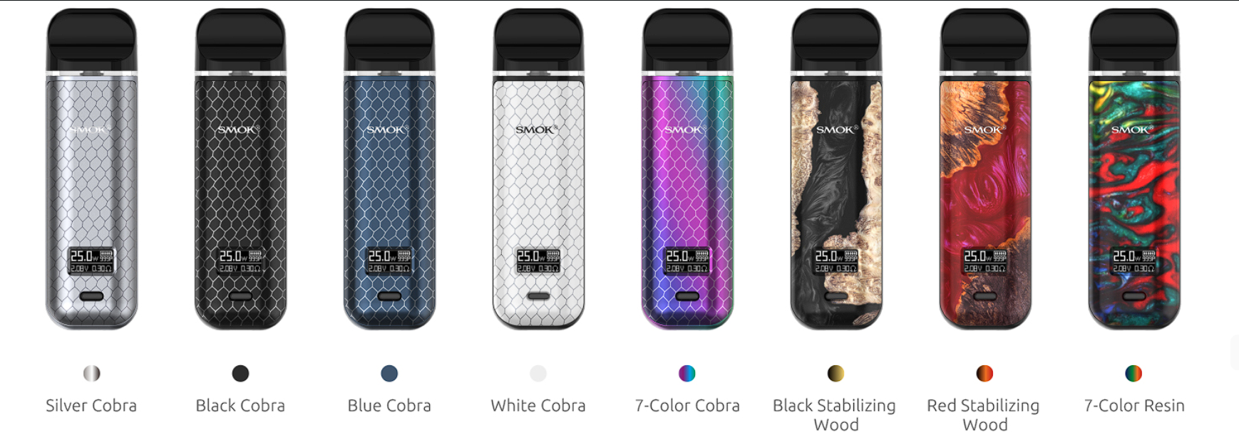- Регулируемая мощность до 25W для индивидуального вейпинг опыта.