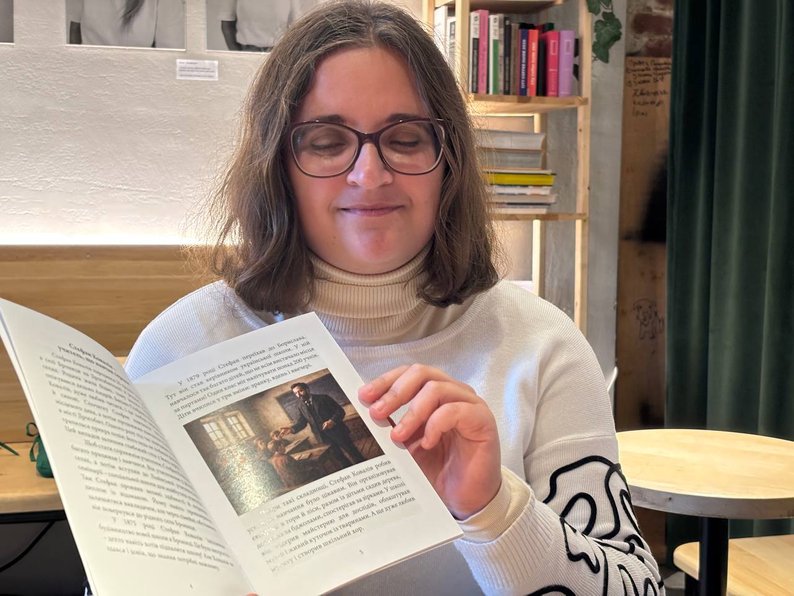 Лідія Мазурчак показує книжку, створену за допомогою ШІ. Суспільне Львів