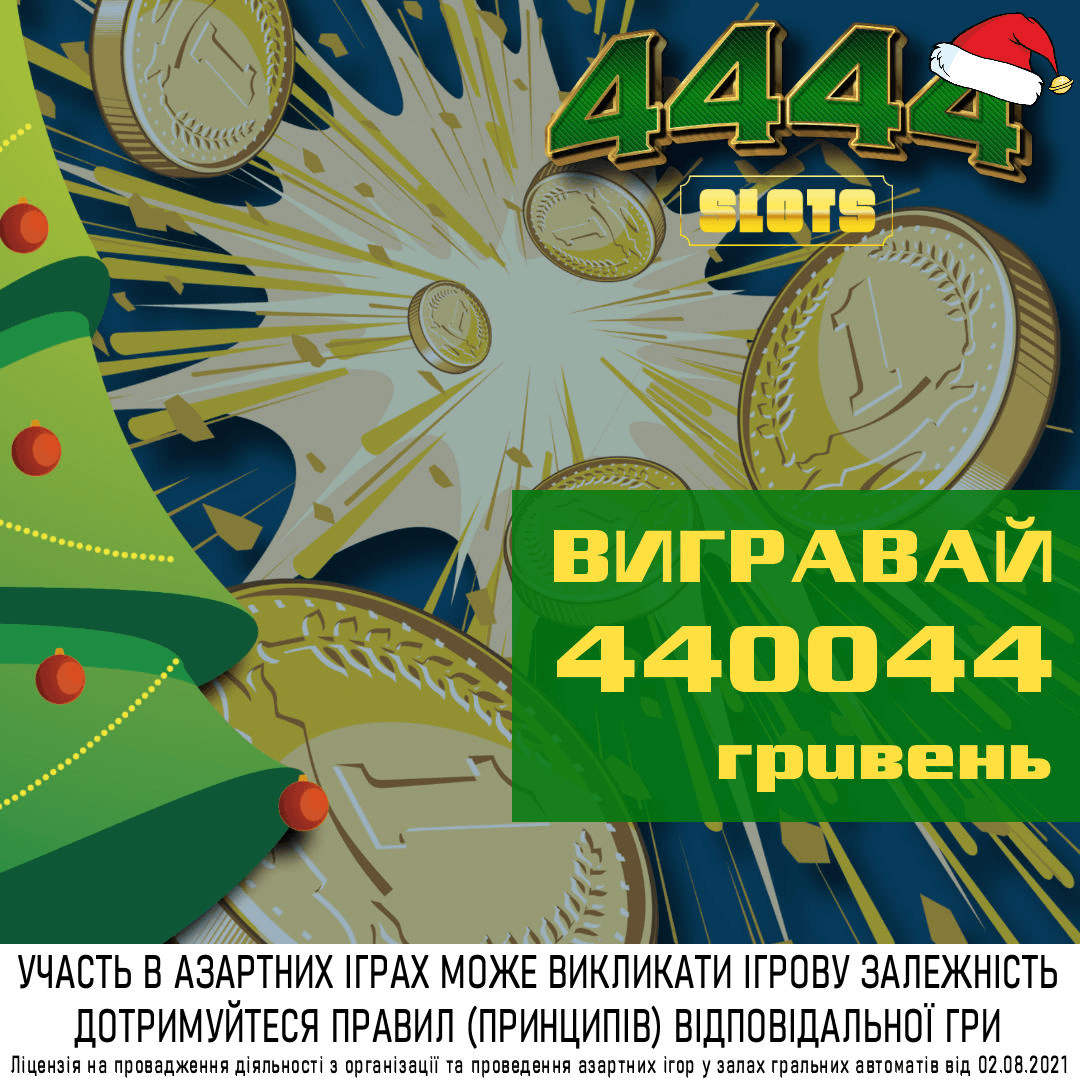 Для цього є дуже привабливий привід. Адже 30.12.2022 у #Четвірках можна зірвати неймовірний джекпот 440044 гривні. Справжній “Шалений Грошовій” від всеукраїнської мережі гральних закладів “4444”, що відбувається лише у Львові! Організатори також обіцяють безліч інших цінних подарунків до новорічних свят. Така можливість випадає лише раз на рік! Дізнайтеся більше за телефоном: +38 099 513 4444.