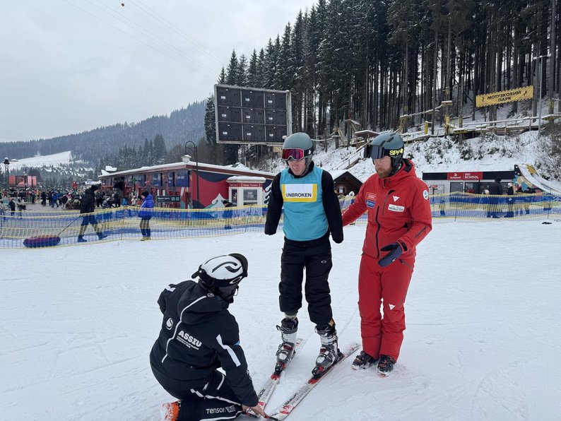 Після цього Микола пересів на адаптивні лижі і разом з професійним інструктором з'їхав найскладнішими маршрутами гірськолижних трас.