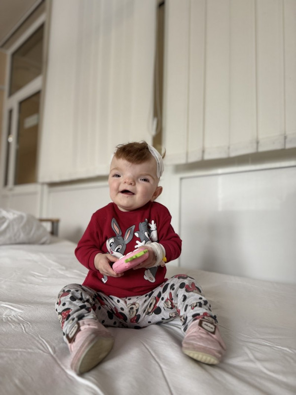 Емілії з Рівненщини від народження діагностували вроджену ваду – краніосиностоз. За інформацією медиків, це стан, при якому один або кілька швів черепа передчасно зростаються, що ускладнює нормальний розвиток черепа та мозку. Для забезпечення здорового росту та розвитку дитини лікарі провели нейрохірургічну операцію з корекції форми черепа.