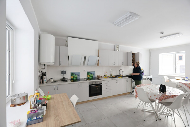"Тут ти відчуваєш себе вдома: просторі кімнати, світло, затишно. В модульному містечку ми прожили 2 роки і 3 місяці, а потім адміністрація запропонувала покращити умови проживання, оскільки я маю особливі потреби у своєму здоров’ї. Мені подобається тут все. Кухня — це взагалі окрема тема, тому що мені це нагадує дім, і про домашній затишок нагадує також те, що ми тут маємо круглі столи — такий круглий стіл в мене був вдома, в моєму великому будинку, який зруйнувала війна", — поділилася Катерина.
