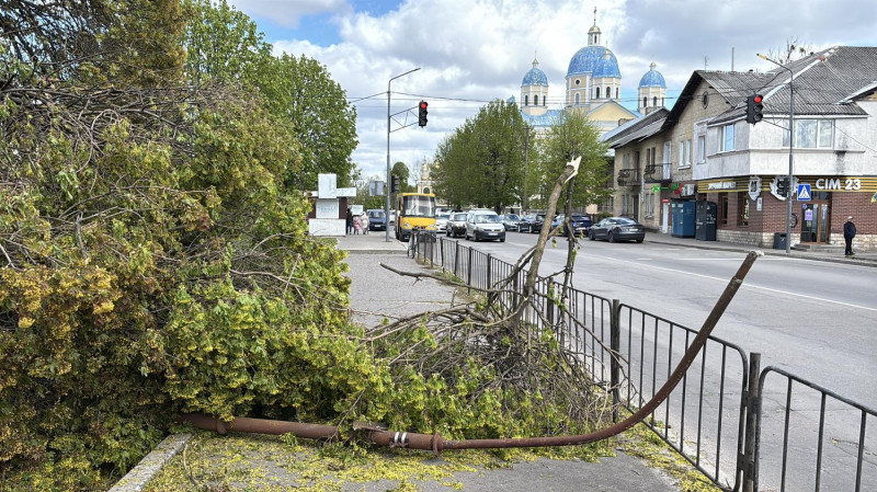 У Львівській області через пориви вітру у різних районах фіксують повалені дерева та гілля. Комунальники від ранку працюють на місцях, щоб забезпечити прохід і вільний проїзд транспорту.