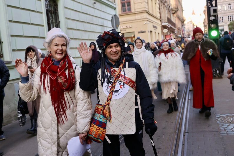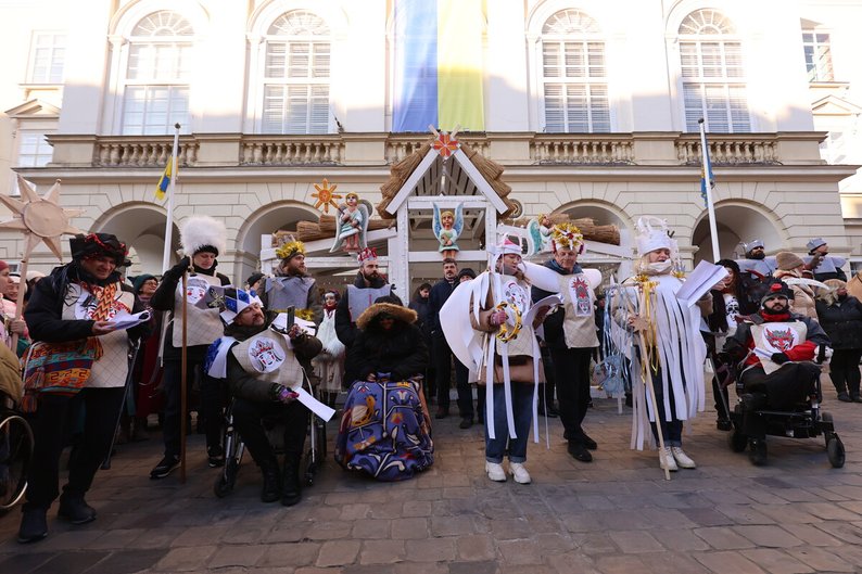 У Львові відбулася хода та вертеп за участю ветеранів і акторів театру "Незламних". Процесія пройшла від центру "Unbroken" до площі Ринок з кількома зупинками.