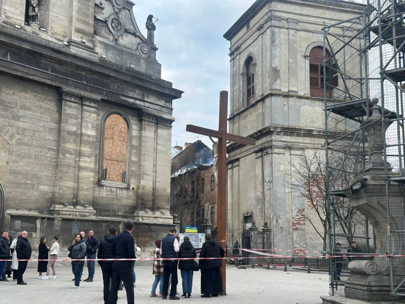 Керуючий справами виконкому Львівської міської ради підсумував, що внаслідок атаки дроном по житловому будинку біля монастиря святого Андрія на площі Соборній були пошкоджені 17 квартир, а також храм і сусідня дзвіниця.