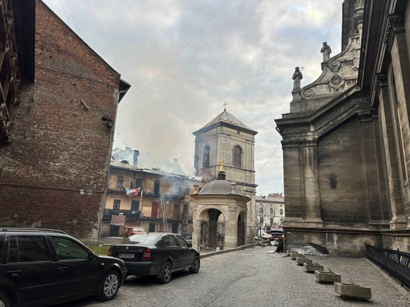 "Це місце — не просто забудова: житловий будинок є пам’яткою архітектури національного значення і частиною ансамблю Бернардинського монастиря. Вибухом пошкоджено дзвіницю храму святого Андрія, а примурні споруди комплексу загорілися", — повідомив він.