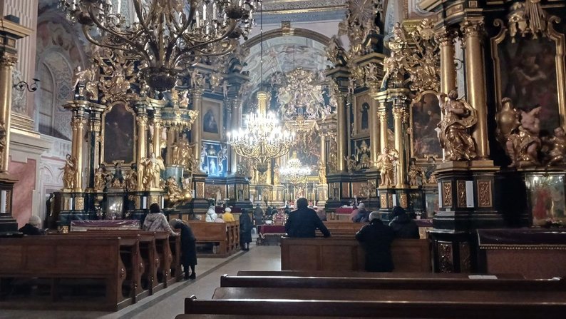 Люди моляться в церкві св. Андрія. Суспільне Львів/Анна Срогий