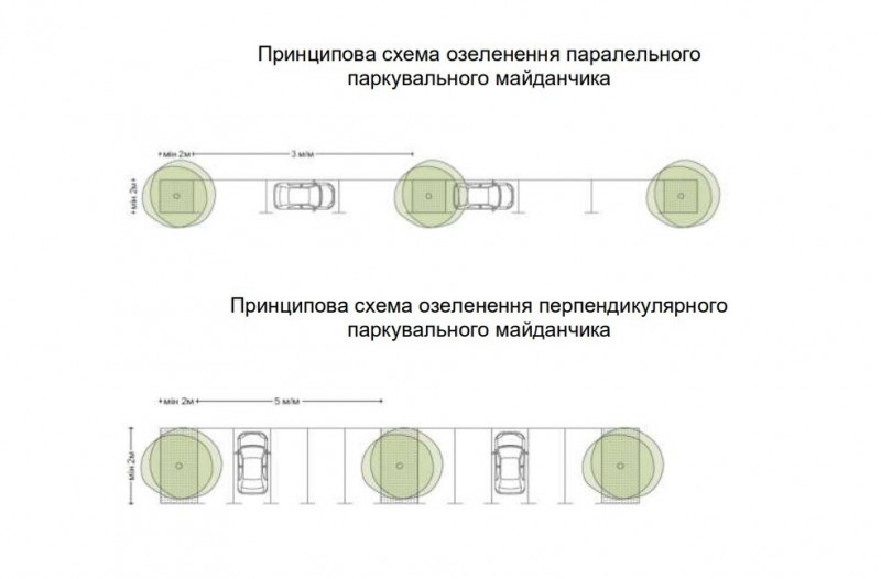 Як повідомив головний архітектор міста Антон Коломєйцев, новий стандарт охоплює як паркування вздовж вулиць, так і великі відкриті майданчики біля торговельних центрів, офісів чи громадських установ. Для перпендикулярного паркування передбачено висадку щонайменше одного дерева на кожні п’ять машиномісць, а для паралельного — одного дерева на кожні три місця. У дорослому віці дерева мають досягати щонайменше 15 метрів заввишки.
