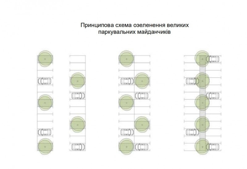 "Ми пропонуємо, щоб на існуючих паркінгах висаджували дерева, а на нових – одразу передбачали озеленення. Це повинні бути великі дерева з розвиненою кроною, які створюватимуть тінь і зменшуватимуть температуру в місті. Адже у затінених місцях паркування на кілька градусів нижча температура, ніж на відкритих ділянках", — зазначив головний архітектор міста.