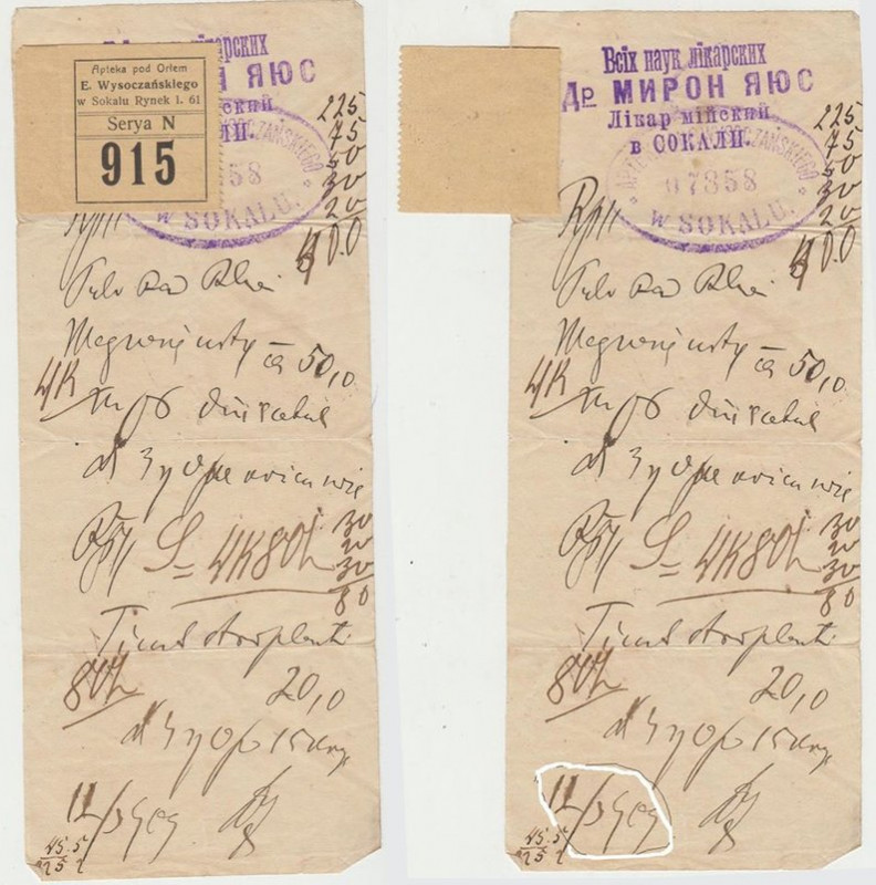 Рецепт зі сокальської аптеки, 1909 рік. З особистого архіву Ольги Черненко