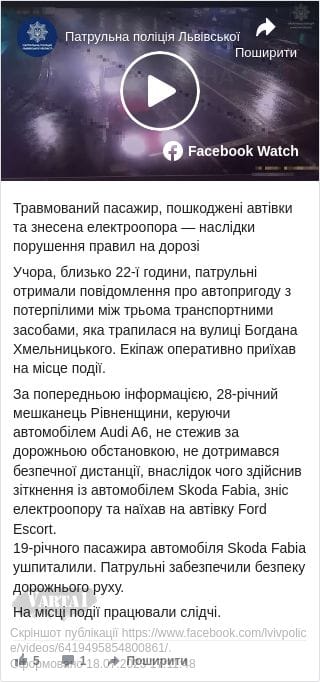 Читайте також: у Львові легковий автомобіль влетів в електроопору.