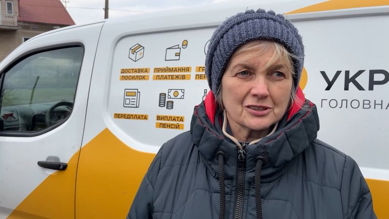 "Прийшла оформити ту тисячу, що Зеленський дає, і кидаю на світло. Дівчата файно обійшлися зі мною, не треба в черзі стояти ніц. Файно. Пенсію мені приносять. Не треба ніц — взяла без проблем. І не треба тепер їхати за нею до Сокаля", — говорить жителька села Наталія Слижук.