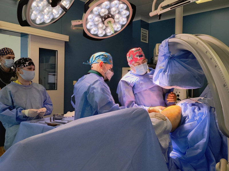 Під час операції лікарі спершу видалили шурупи, що блокували суглоб. Потім встановили фрагменти кістки у правильне положення та зафіксували їх спеціальною пластиною. Другим етапом лікування стало застосування технології зрощення кісток за допомогою стовбурових клітин.