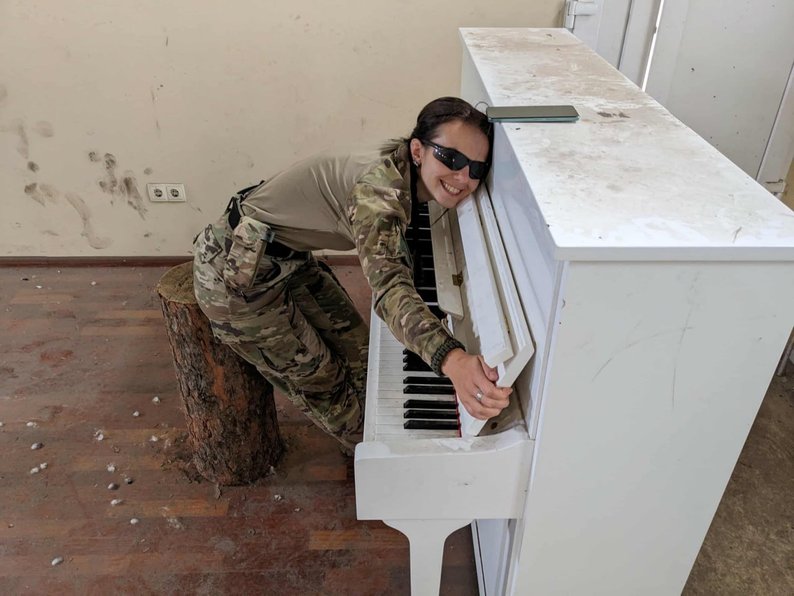 На війні окрім речей, потрібних парамедику, вона також знайшла музичні інструменти. Де б вони не розташовувалися, Анастасія знаходила фортепіано.
